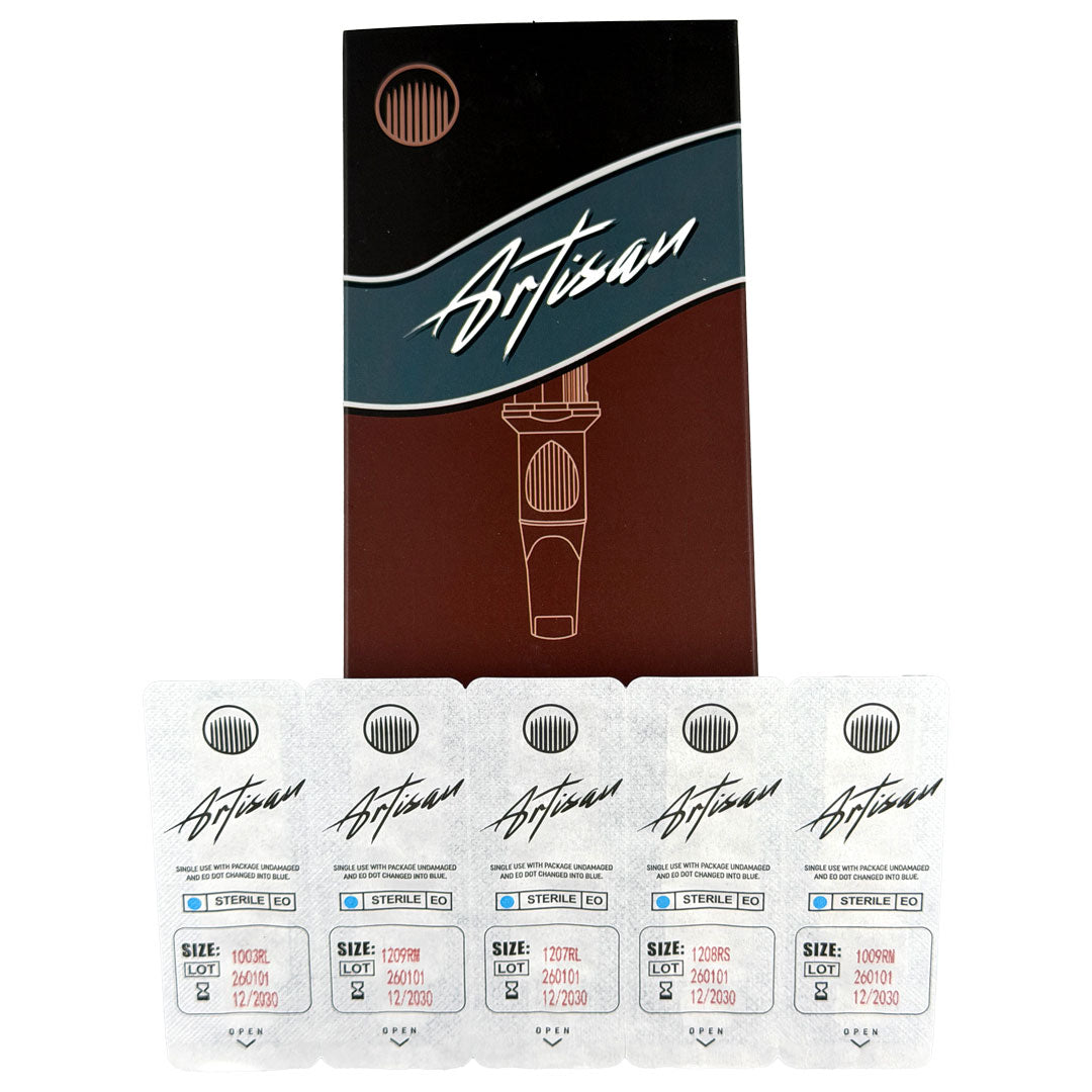 The Artisan Sample Pack gives you the opportunity to experience the precision and performance of our professional needle cartridges before committing to full boxes. Each sample pack includes 5 individually blister-packed cartridges, allowing you to test different configurations and find the perfect needles for your technique.